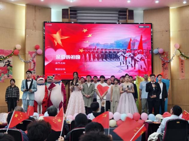 活动尾声,全场师生齐声高唱《歌唱祖国》,激昂的旋律将现场气氛推向高潮,深情表达了对祖国的热爱与祝福。