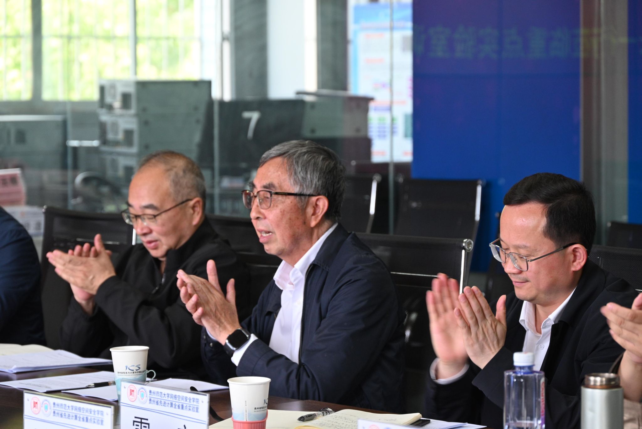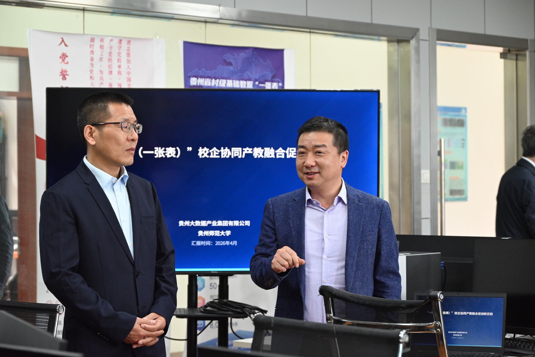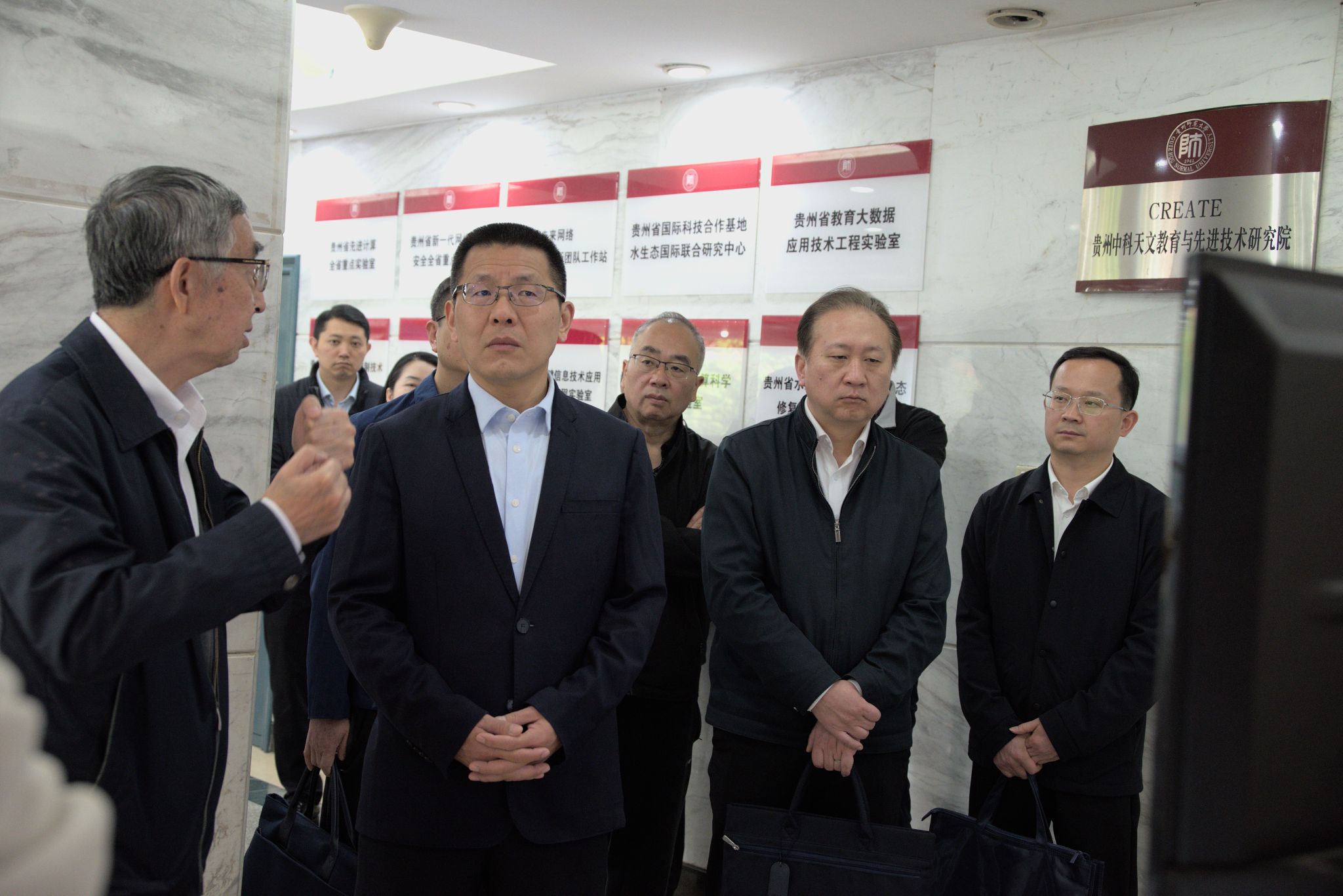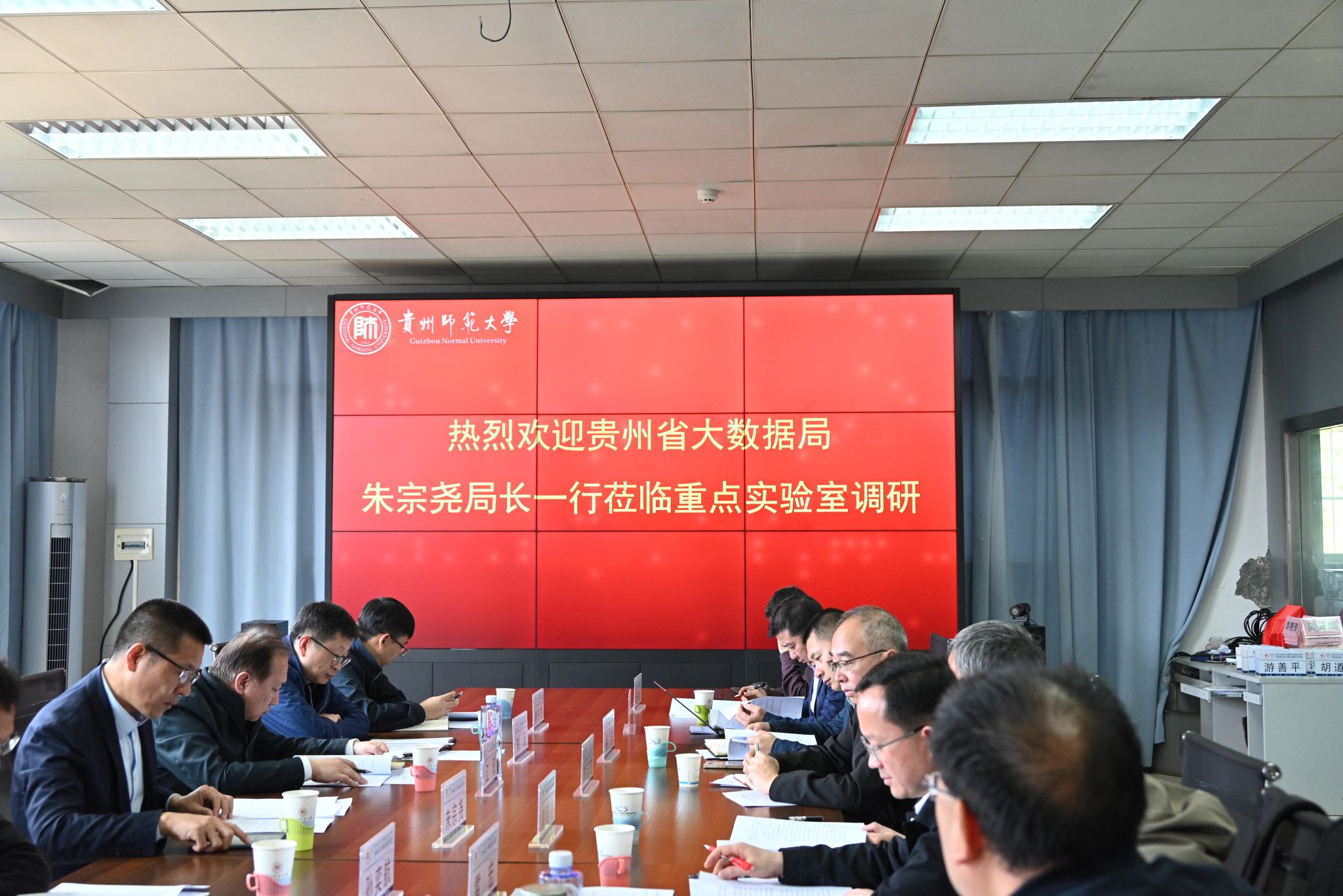 2026年4月8日上午,贵州省大数据发展管理局党组书记、局长兼省政府副秘书长朱宗尧率队赴贵州师范大学宝山校区,专题调研我院承建的“贵州省先进计算全省重点实验室”与“贵州省新一代网络空间安全全省重点实验室”建设情况。省大数据局副局长江阳,办公室、基础设施处、人事人才处、规划投资处相关负责同志参加调研。贵州省大数据领导小组原副组长、省政协原副主席、贵州省信息与计算科学重点实验室主任谢晓尧教授陪同调研并出席座谈会。网络空间安全学院党政负责人、实验室副主任及各科研团队教师代表参与活动。